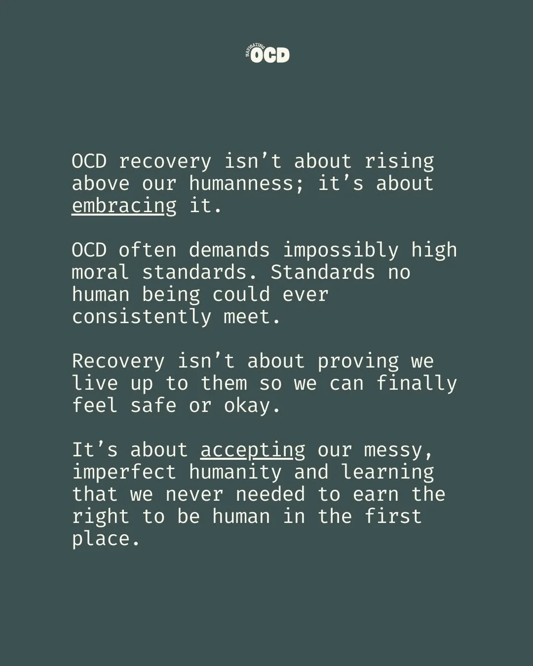 Follow me on Instagram @navigating.ocd, where I share daily OCD content, host free weekly Q&A sessions, and release new podcast episodes to support you on your recovery journey.